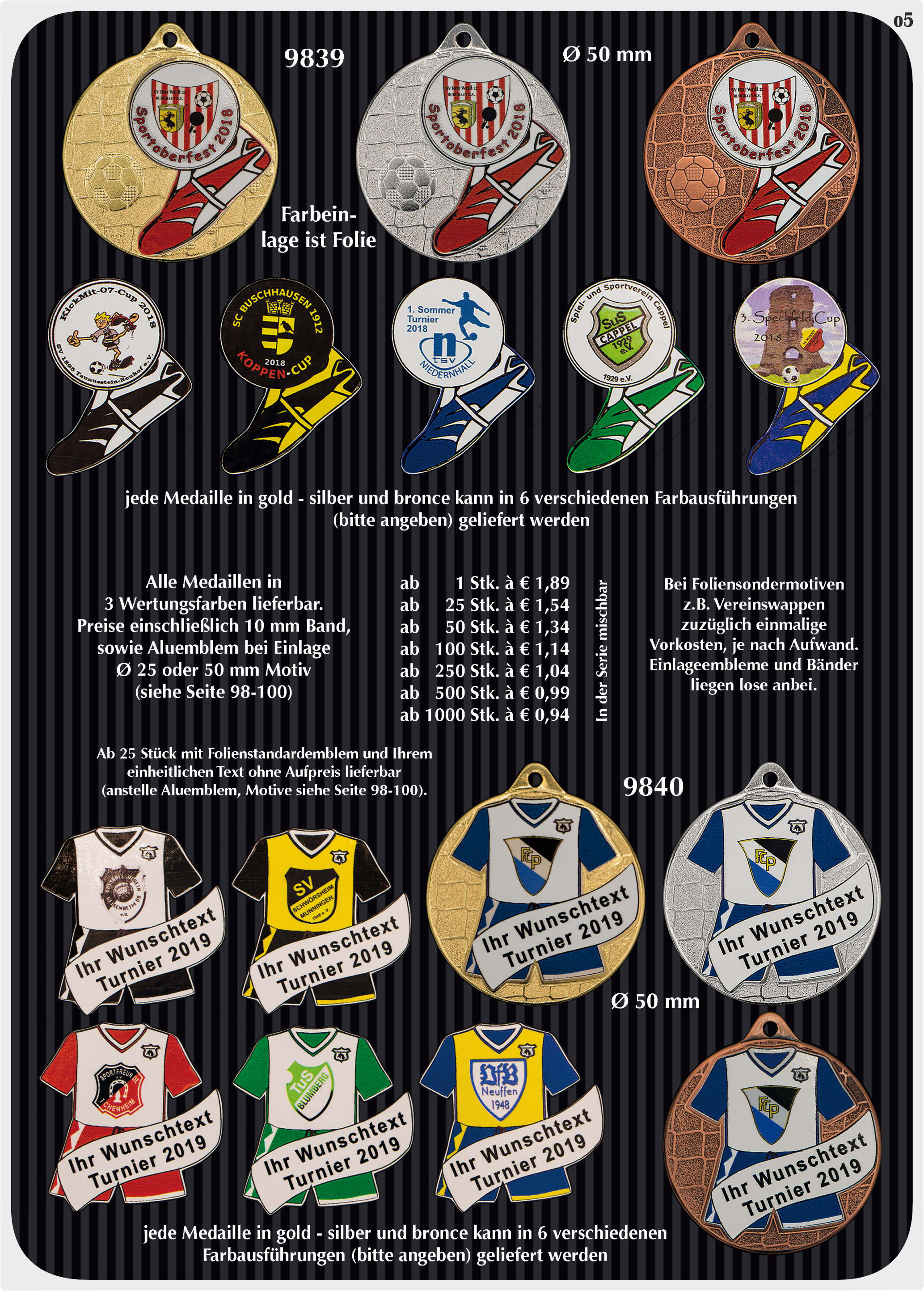 Unsere Angebotspreise verstehen sich inkl MwSt, einer Druckfolie (passend für die Medaille mit Sportmotiv